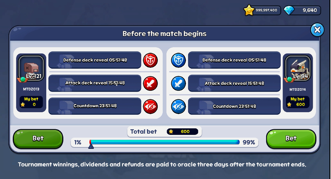 Web3 Observers can participate in win/loss predictions using the Champion Oracle.