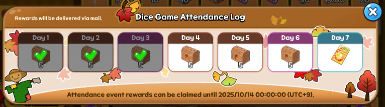 - 이벤트 기간 동안 매일 접속하면 출석 보상을 획득할 수 있습니다.