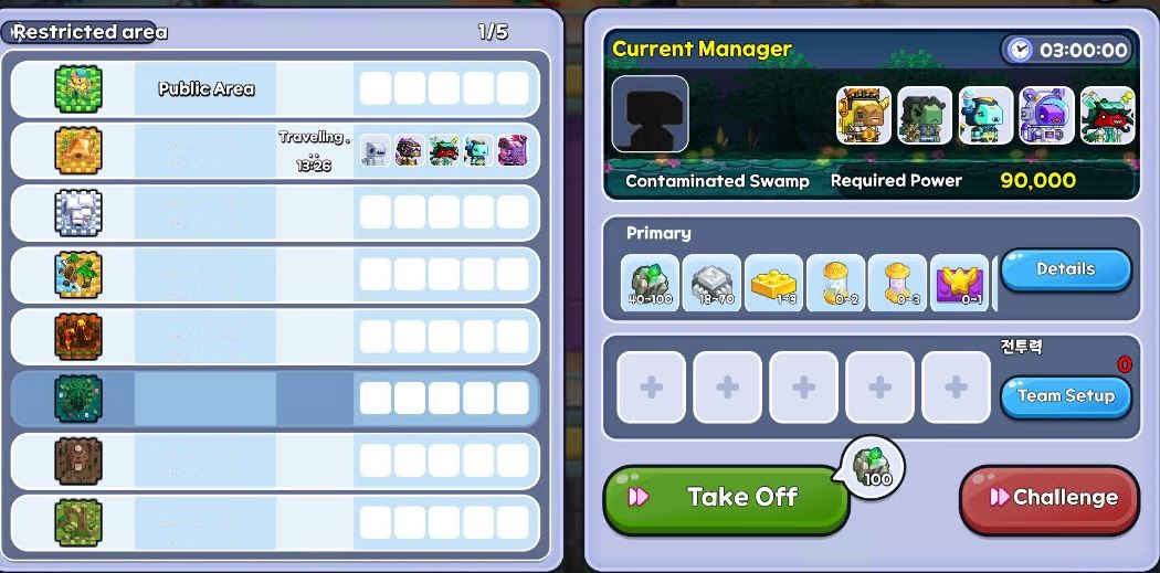 - 제한 구역 진입: 전투 / 유료 / 무료 여행 진입 버튼 생성